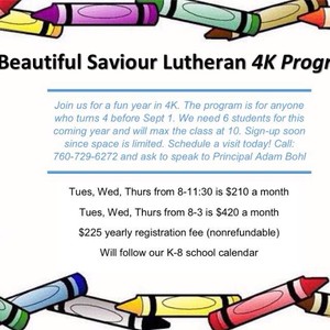 Carlsbad Christian Academy is open Monday, Tuesday, Wednesday, Thursday, Friday, Sunday.